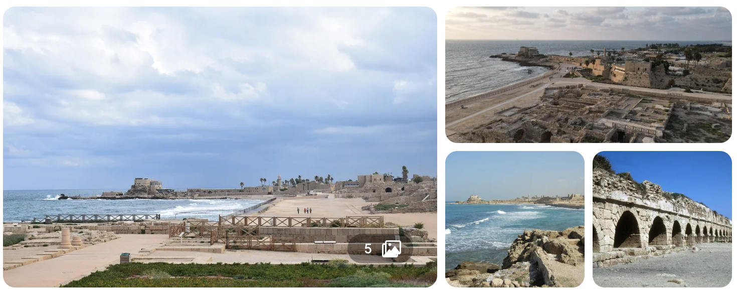 Esta espetacular cidade portuária mediterrânea foi construída pelo rei Herodes, o Grande, por volta de 25 a.C. e tornou-se um dos centros costeiros mais importantes do Império Romano.