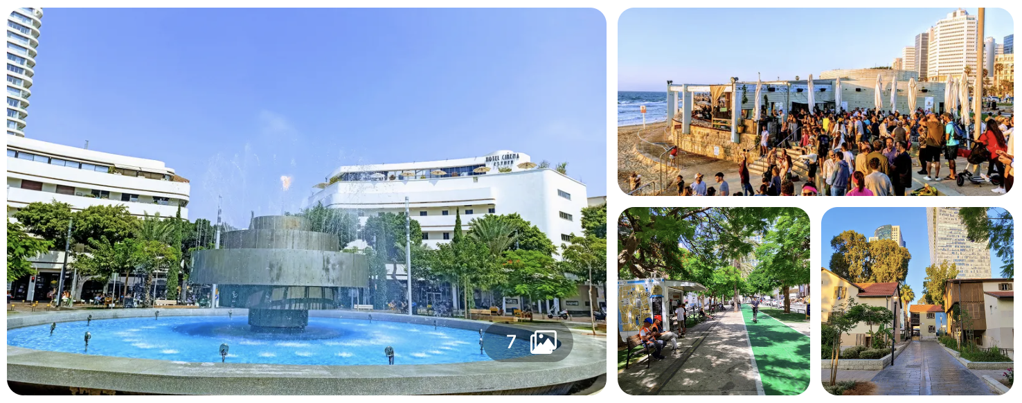 Localizado ao lado do famoso Mercado Carmel, a uma curta caminhada da praia. A própria Nahalat Binyamin é um destino gastronômico popular – grande parte da rua é fechada para carros à noite, criando um ambiente vibrante para pedestres.