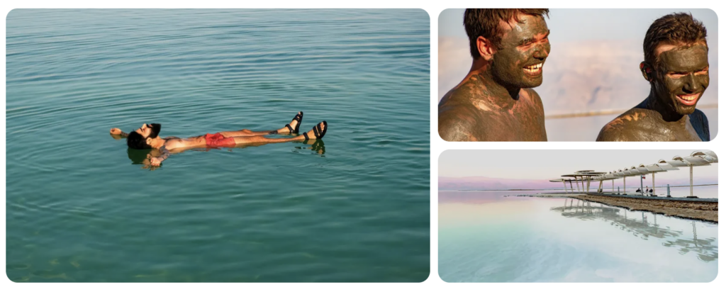 O resort oferece acesso a piscinas, vestiários, chuveiros e acesso direto à famosa praia de água salgada. Você pode flutuar sem esforço no Mar Morto, rico em minerais (a alta concentração de sal torna impossível afundar), e se cobrir com a lama negra terapêutica encontrada ao longo da costa.