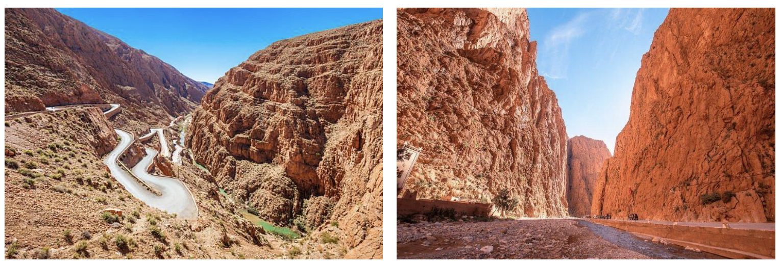 Sugestão do seu guia, de avistar o nascer do sol nas dunas. Café da manhã e seguiremos em direção a Rissani, vila tradicional do sul de Marrocos. Visita ao Souk (mercado tradicional e mercado de animais vivos). Percorreremos a estrada desértica ao encontro das majestosas Gargantas de Todra com possibilidade de almoço e relaxar ao som da água límpida da montanha. Seguiremos para as Gargantas de Dades, fazendo várias paradas para apreciar as maravilhas oferecidas pela mãe natureza. Jantar e alojamento.